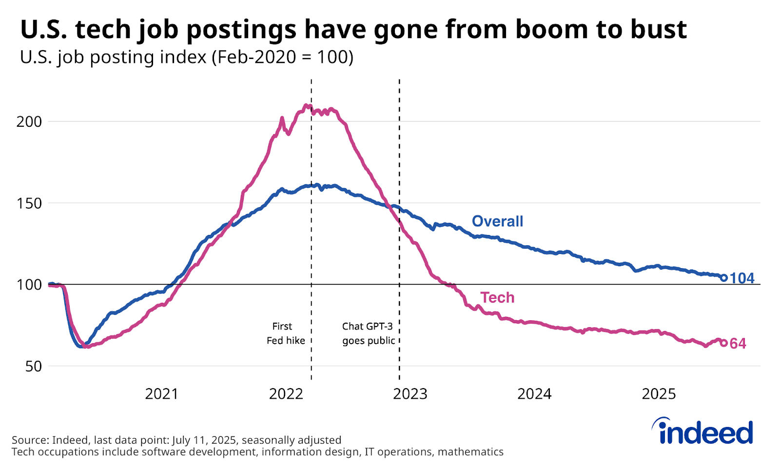 Job postings for entry-level software engineers fell 71% between February 2022 and August 2025