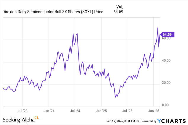 For instance, the share price of Direxion Daily Semiconductor Bull 3X Shares ETF (SOXL) fell 62% from July to August 2024 before sliding further into April 2025 lows.