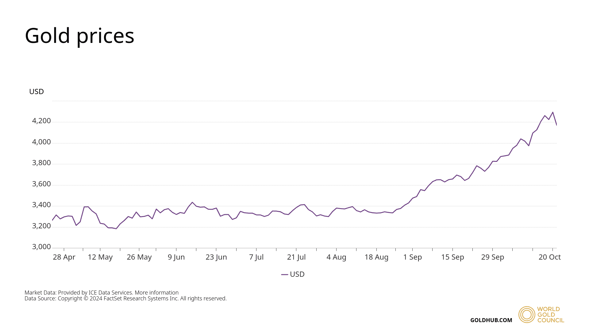 Gold has gained nearly $1,400 since starting the year at $2,658 per ounce on January 2. Western investors helped drive record ETF inflows of $26 billion in Q3, with North American markets accounting for $16.1 billion.