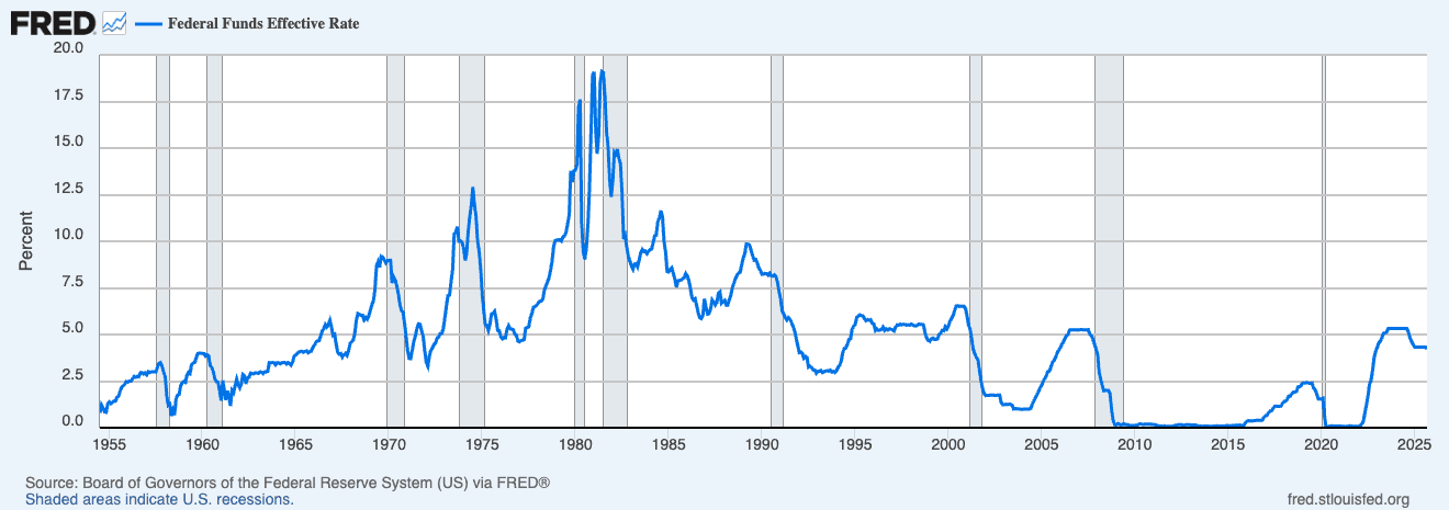 Meanwhile, Jerome Powell and the Federal Reserve cut rates in September for the first time this year — a quarter-point reduction to 4-4.25%. Powell called it a "risk management cut", acknowledging that "downside risks to employment have risen."