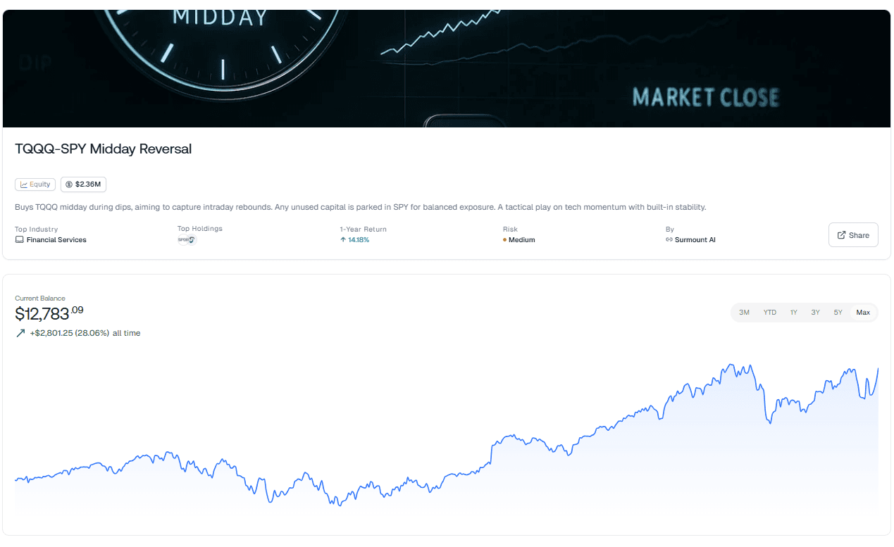 [Deploy the TQQQ-SPY Midday Reversal on Surmount Today]